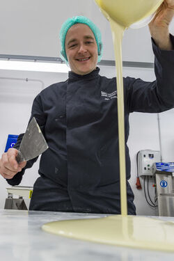 file nameMilkybar chocolate pouring - confectionery kitchen York PTC March 2018.jpg