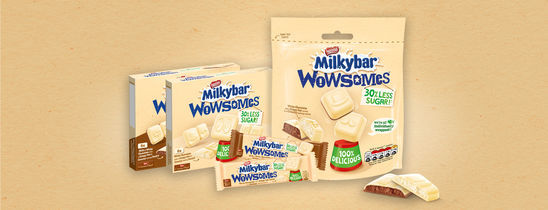 HeadlineMilkybar Wowsomes - the first chocolate bar in the world to use Nestlé’s innovative sugar reduction technique.